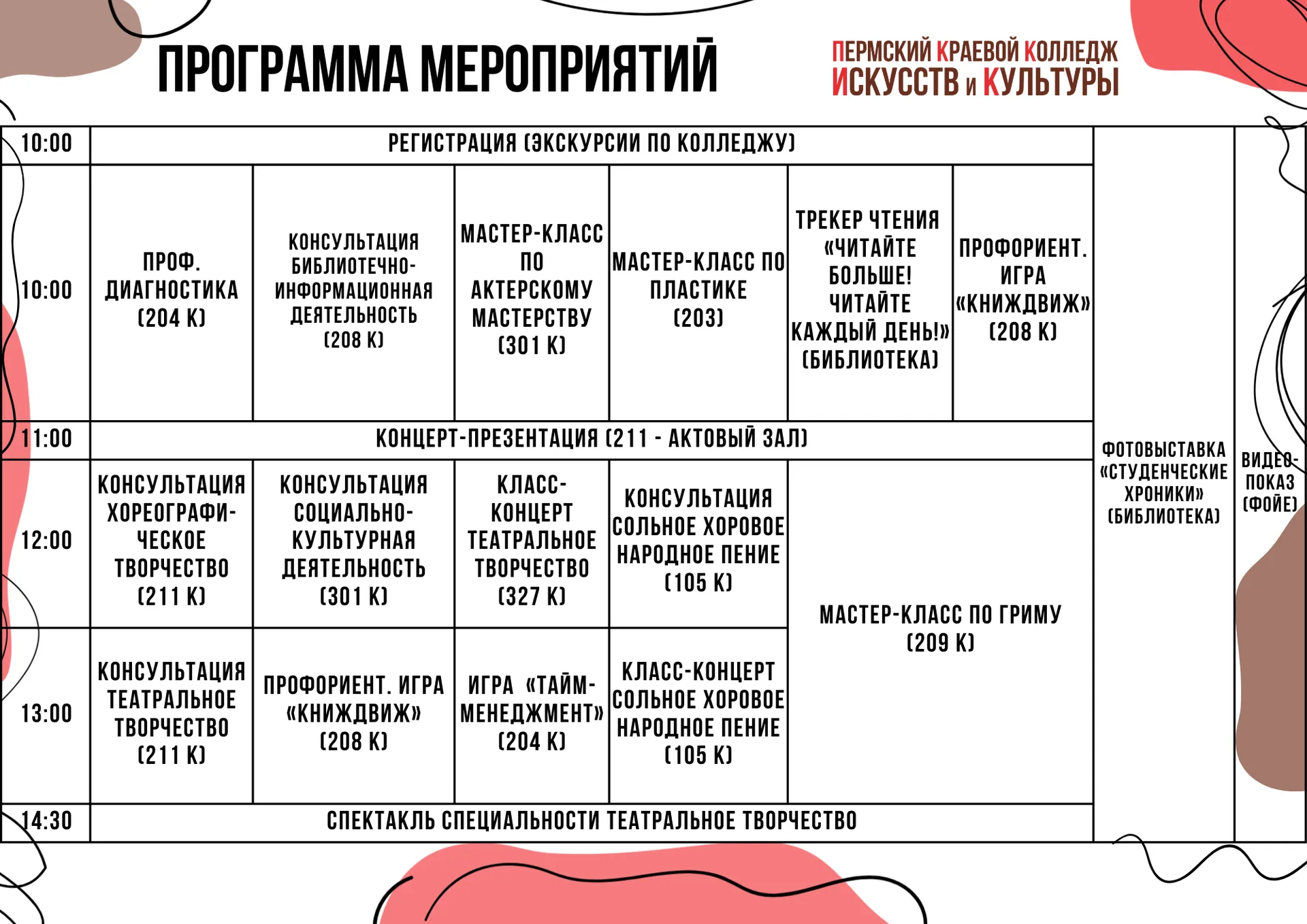 ГБПОУ «Пермский краевой колледж искусств и культуры» приглашает выпускников школ, средних профессиональных образовательных учреждений и всех заинтересованных лиц на День открытых дверей, который состоится 4 апреля (суббота)!